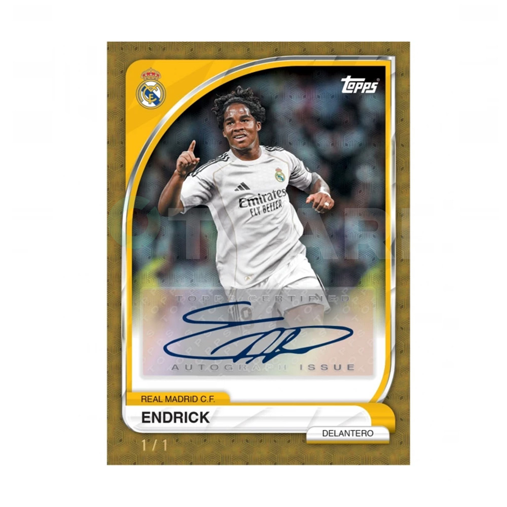 Topps Real Madrid Collector Tin 2025/26. Una caja metálica con 35 cartas de las estrellas actuales y leyendas del club. Cada lata garantiza 2 paralelas numeradas, con la posibilidad de conseguir cartas con autógrafos únicos. Completa tu colección con cartas base de los jugadores del primer equipo y rookies. Un imprescindible para los fans Del Real Madrid y coleccionistas de todo el mundo.